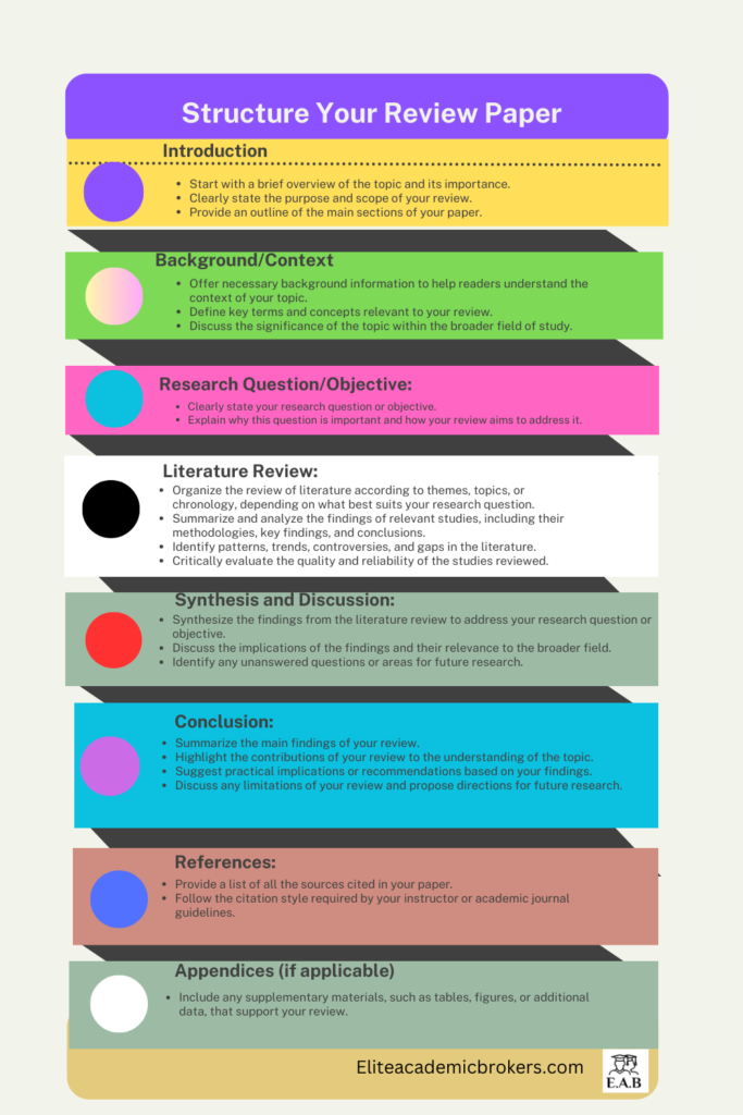 - Poor Organization and Structure: A well-organized review paper follows a clear structure that guides readers through the review process. Avoid a disjointed presentation of information by structuring your review logically, with clearly defined sections and subheadings.