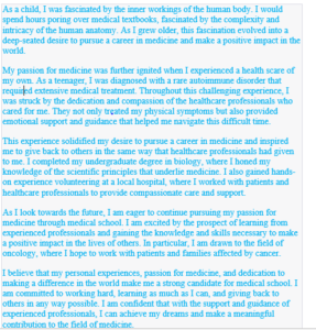 - Conclusion – Reinforce why you are a strong candidate for medical school.