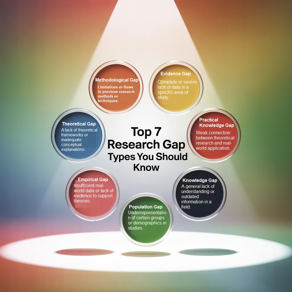 Identifying research gaps is critical in conducting meaningful and original academic work. Whether you’re a student preparing a thesis, a doctoral candidate crafting a dissertation, or a professional researcher exploring new avenues, understanding the different research gaps can help you pinpoint areas that need further investigation. Not all gaps are created equal; some emerge from outdated methods, others from neglected populations, and others from a lack of empirical data or theoretical foundations. In this guide, we’ll walk you through the Top 7 Research Gap Types You Should Know, providing clear explanations to help you recognise and address them effectively in your work.