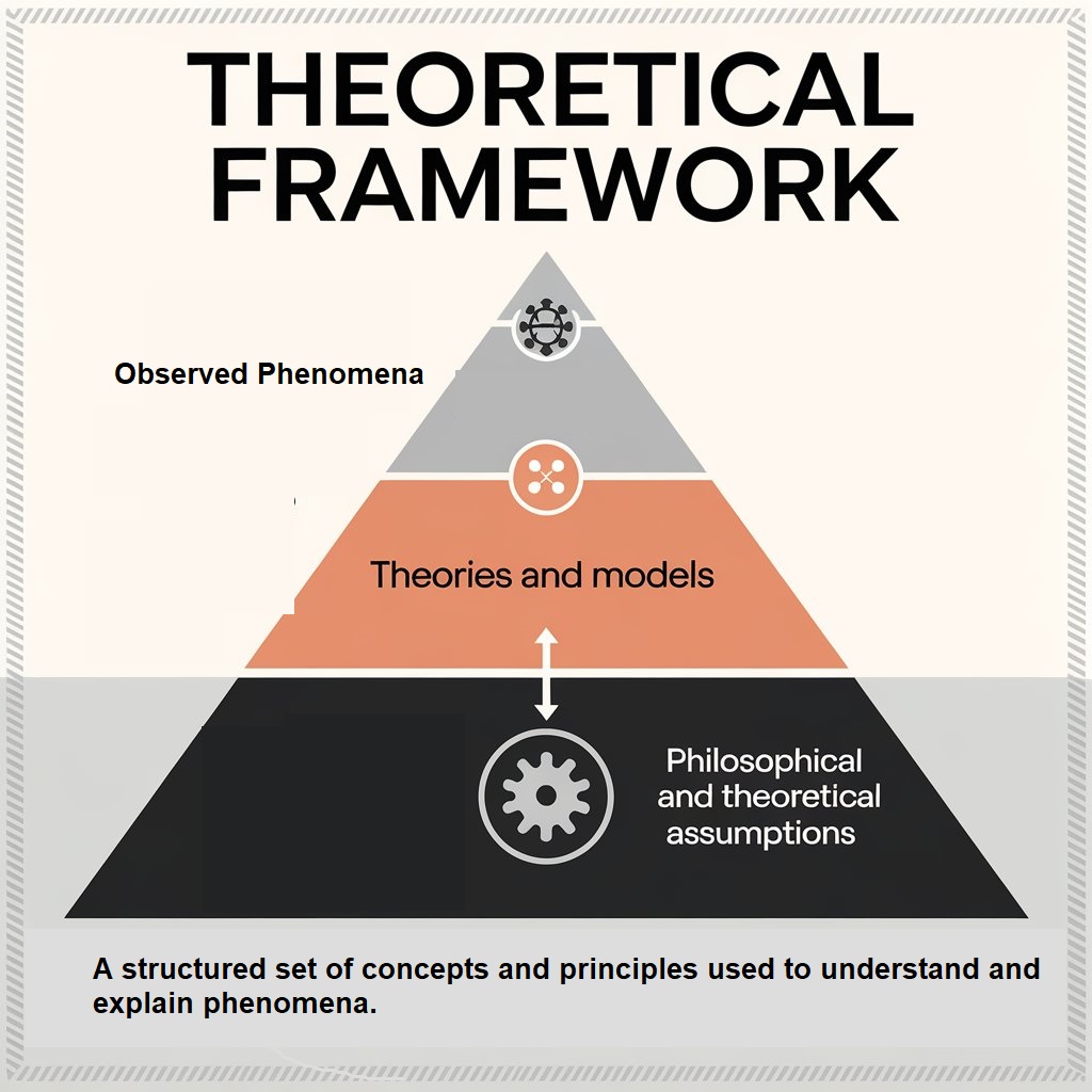 A theoretical framework forms the research pillar, providing a structured approach to understanding and investigating a research problem. It pulls together key concepts, variables, and their relationships from existing theories and literature, creating a cohesive foundation for inquiry. This framework guides the formulation of research questions and hypotheses and shapes the selection of appropriate methods and data analysis techniques. Anchoring the study to established theoretical perspectives boosts the credibility and reliability of research findings. Moreover, a well-developed theoretical framework aids in interpreting results and discussing their significance within a broader academic context. It serves as a critical tool in steering research efforts, offering a systematic way to tackle complex issues and generate meaningful insights that contribute to advancing knowledge in the field.
